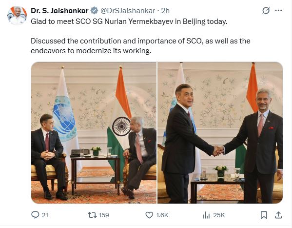 সাংহাই কো-অপারেশন অর্গানাইজেশন-এর (SCO) সঙ্গে ভারতের সম্পর্ককে জোরদার করতে ভারতীয় প্রতিনিধি হিসেবে বেজিং সফর করেন জয়শঙ্কর। তিনি বলেন,